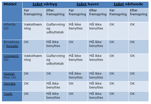 Agil må også anvendes om foråret, hvis det ikke er anvendt efteråret. Der må anvendes 1-1,2 l/ha.