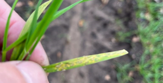 Hvede med meldug på de ældre blade, rug med brunrust