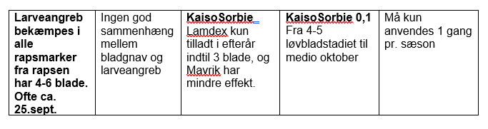 Kan bekæmpes på vintersæd med 3-4 blade med 0,05 Kaiso Sorbie/ Mavrik. (Lamdex må ikke anvendes, da den nye godkendelse kun tillader Lamdex i efteråret indtil vintersæden har 2 blade).