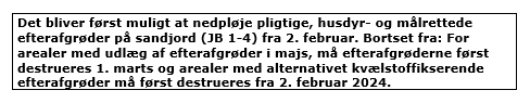 - JB 5-11 men ikke på JB 1-4: Man må fjerne jorddække på arealer med efterafgrøder.
