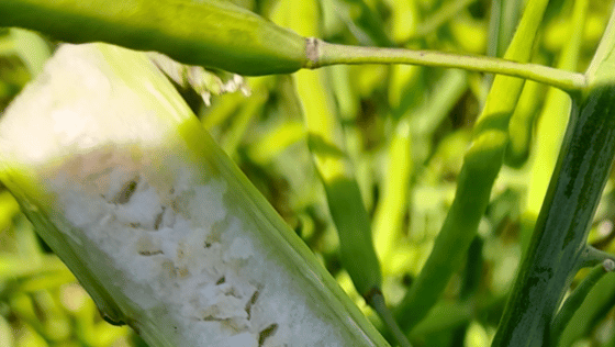 Vi har tjekket nogle stængler fra forskellige marker og de fleste har en fin hvid marv uden bladribbesnudebiller.