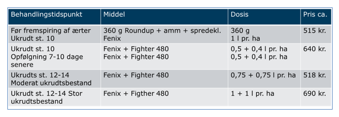 Anvend i gennemsnit 1 l Fenix eller 1 l Novitron pr. ha evt. tilsat glyphosat.