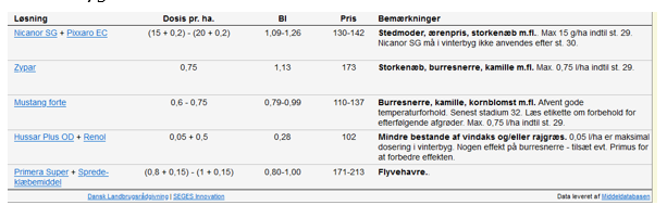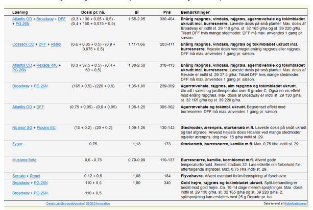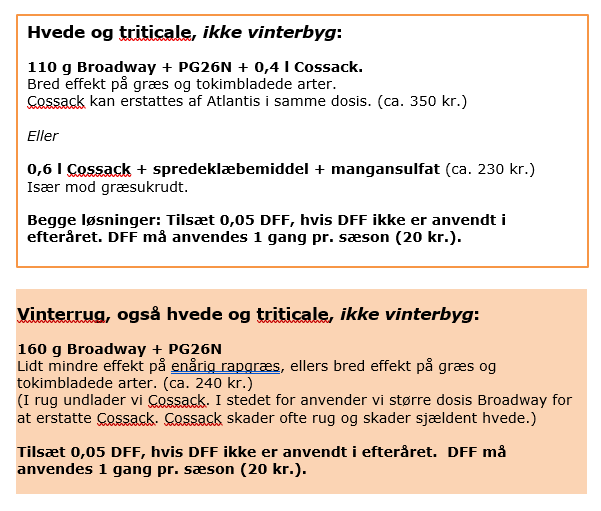 Vores forslag er mod almindelige arter og gælder også mod enårig rapgræs og rajgræs
