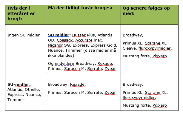 Over 12 gr. Midler som Primera Super/Foxtrot, Starane XL og Starane/Flurostar bør først tages i brug, når temperaturen er over 12 gr.