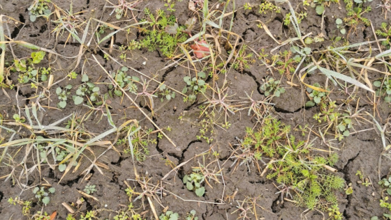 Billede 1: Vinterhvede med ukrudt i slut marts 2023. Foto: Sofie Olesen