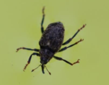 Billede af Bladribbesnudebille. Den er mindre end glimmerbøssen.
